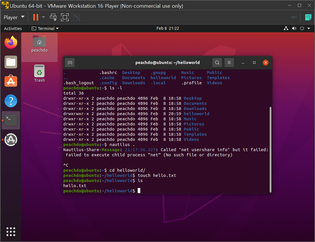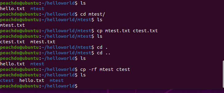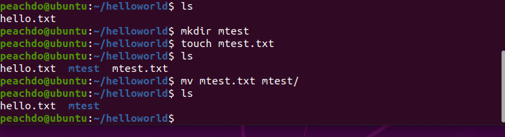 helloworld 파일안에 디렉토리 만들고, txt 파일도 맹글고 그걸 옮겨보자~~