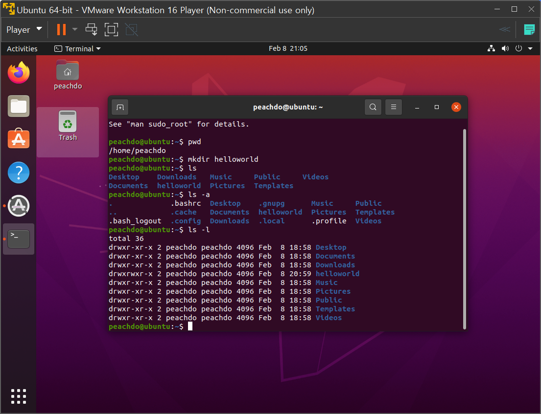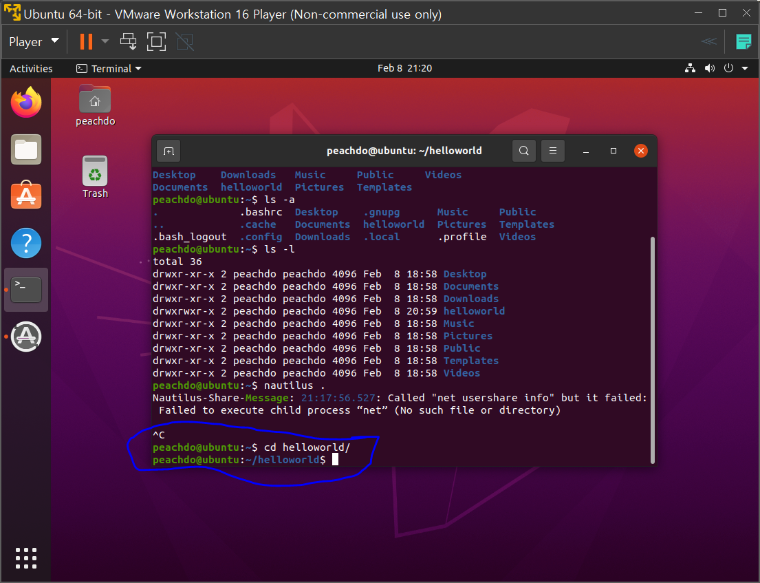 cd ~ 홈으로 가는 명령어 == /home/peachdo