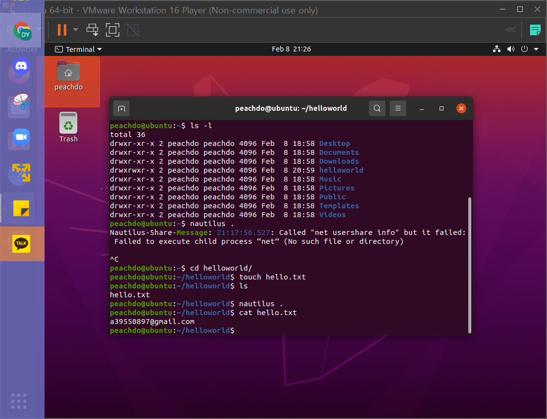 이렇게 txt 파일을 하나 만들었다. 이거 물론 여기서 만든거 가상머신안에 있는거니까 내 컴퓨터로 가져올 수 있다.
