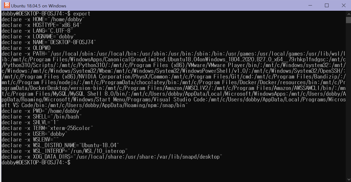 단, 이렇게 export로 줘버리면 시스템 재부팅, 로그아웃시 환경변수 값이 사라짐. 매번 다시 할당 필요
