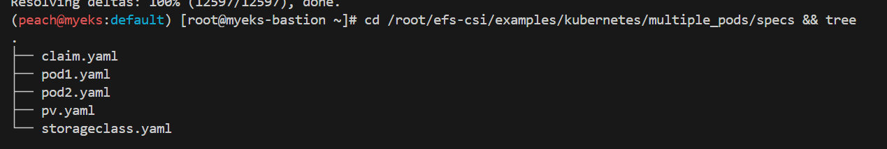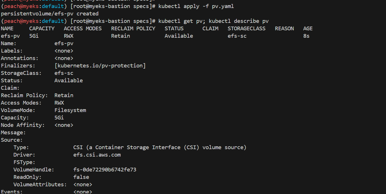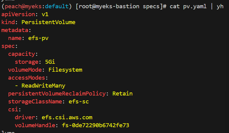 pv 생성 > volumeHandle을 위에서 확인한 efs 파일 시스템 id 로 변경