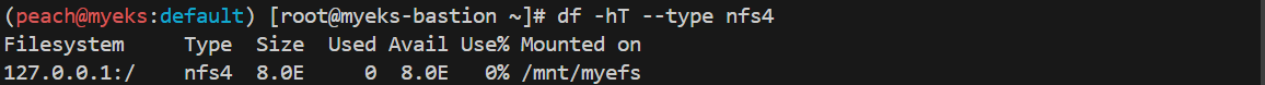 현재 접속한 배스천 호스트에서 efs 파일 시스템 디렉토리를 확인한 것