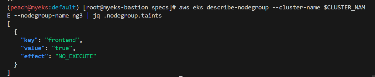 aws eks describe-nodegroup --cluster-name $CLUSTER_NAME --nodegroup-name ng3 | jq .nodegroup.taints