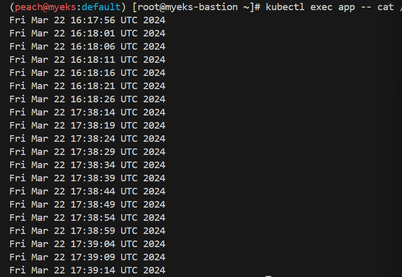 파드 생성 & 연동 > 파드 내 /data 에 저장되는 것들이 EFS를 사용한다는 뜻