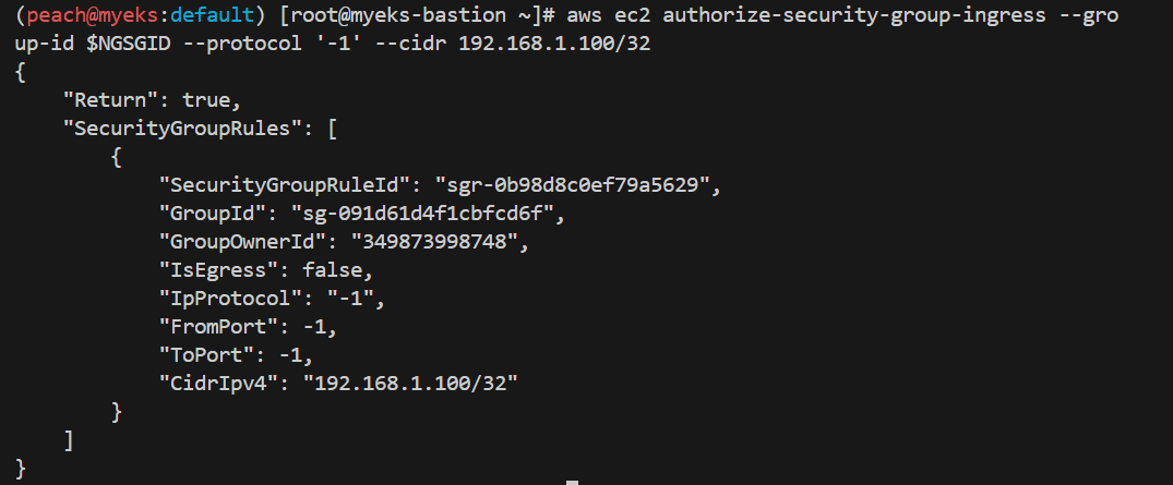 aws ec2 authorize-security-group-ingress --group-id $NGSGID --protocol '-1' --cidr 192.168.1.100/32