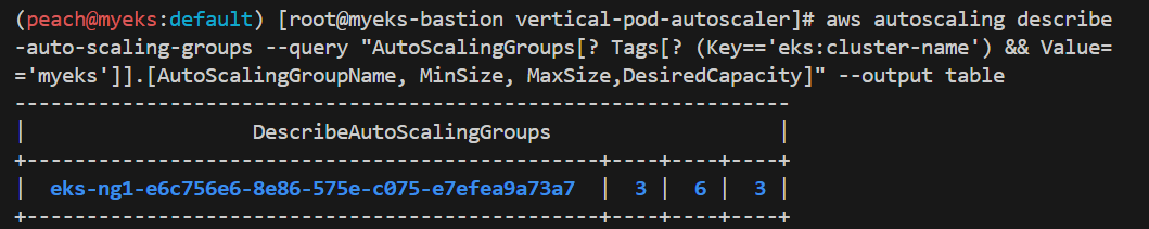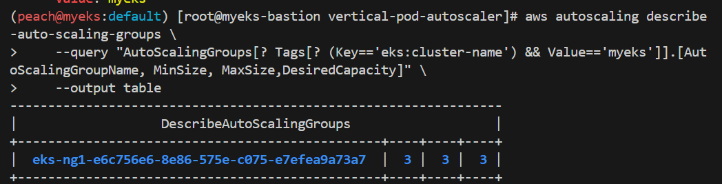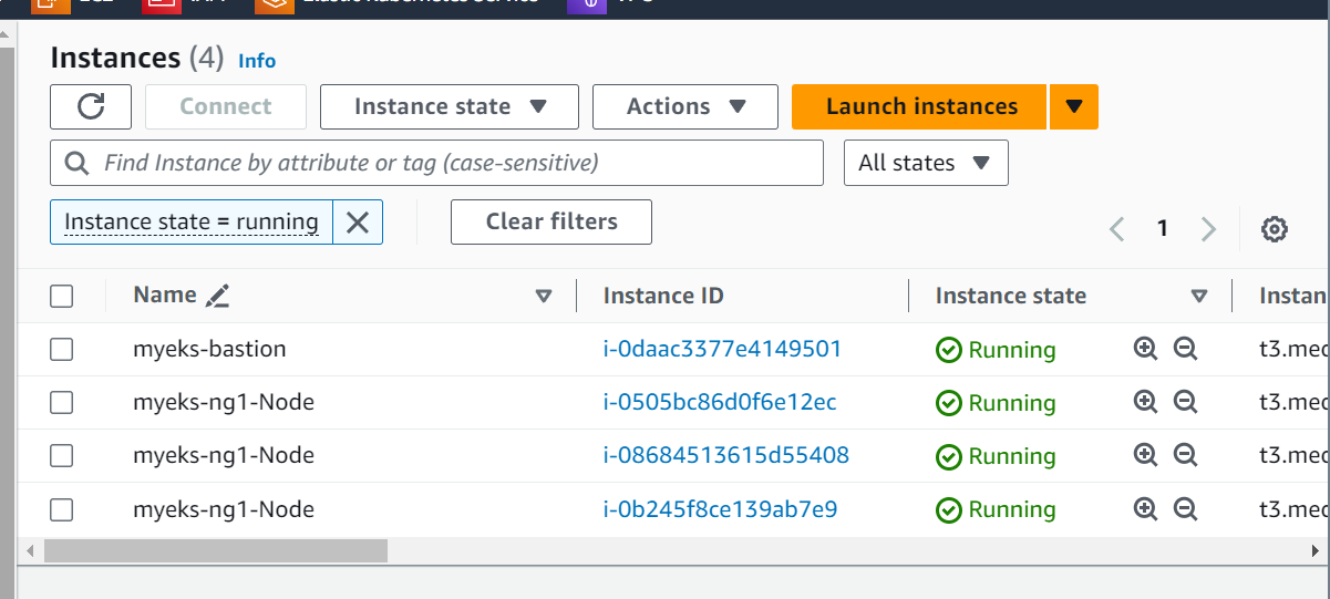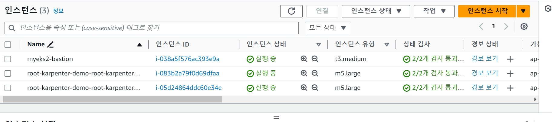 배스쳔 1, 노드 그룹 3, 서브넷 3, vpc 1,
