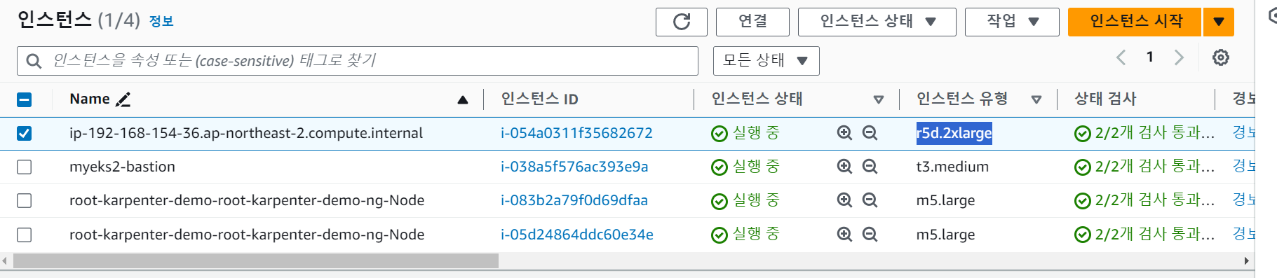 m5.large 2개 에서 cpu 2개 -> r5d.2xlarge 에서 cpu 4개~ 3개짜리가 없어서 덤인가..