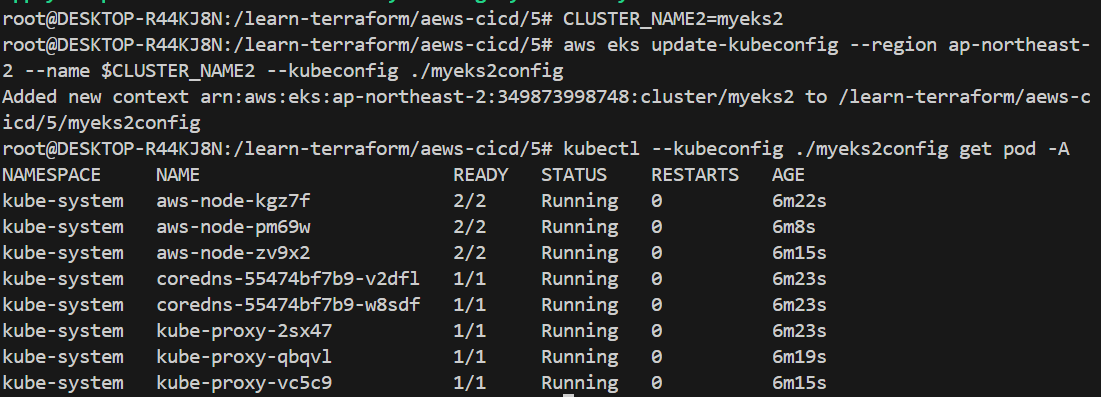 aws eks update-kubeconfig --region ap-northeast-2 --name $CLUSTER_NAME