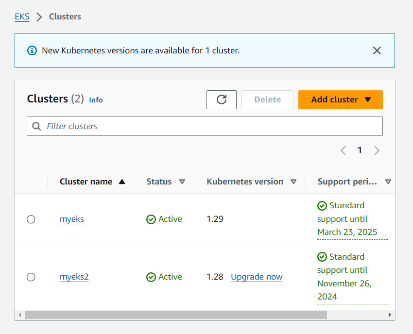 # EKS 클러스터 정보 확인