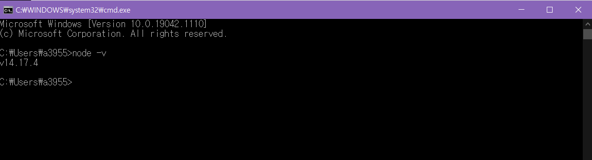 4. window+r 키로 cmd 켜서 node -v 타이핑 후 버전 잘 뜨는지 확인