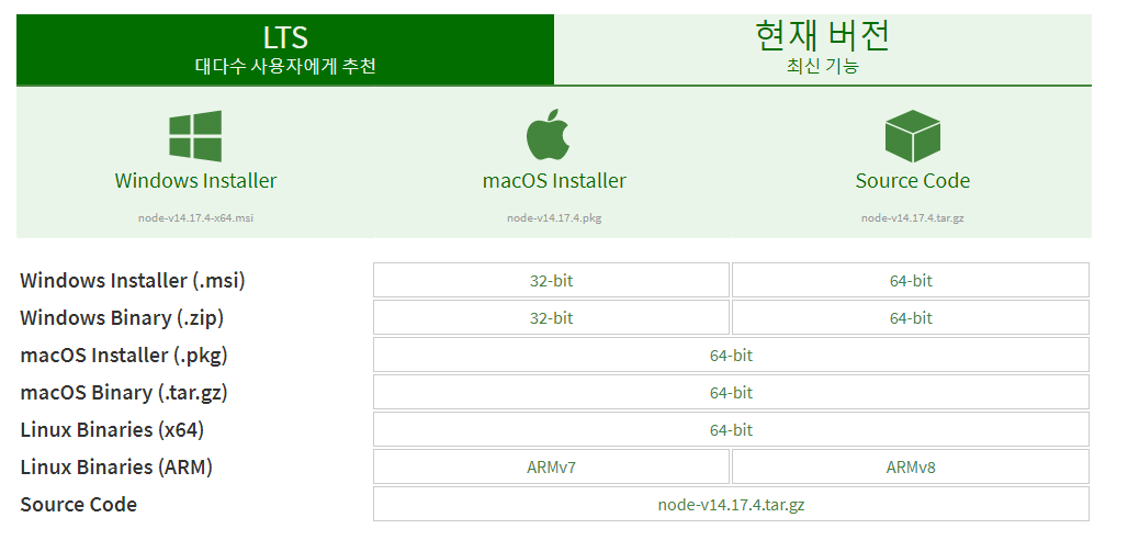 https://nodejs.org/ko/download/